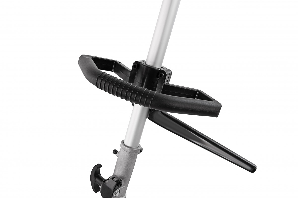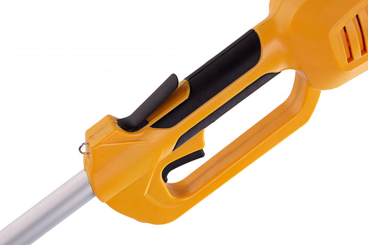 - Удобное хранение и транспортировка — благодаря разборной штанге триммер не занимает много места.