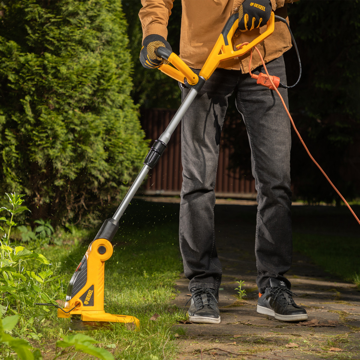 • Надежность — благодаря медной обмотке двигателя электротриммер выдерживает длительную работу при высоких нагрузках.
