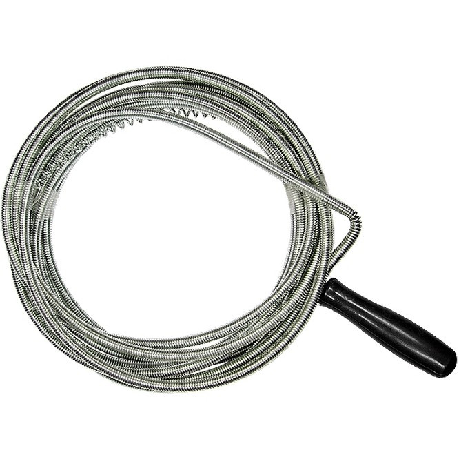 Трос для прочистки труб Сибртех 92462 длиной 5 м и диаметром 6 мм успешно справляется с засорами в канализационных трубах, вызванными скоплением шерсти, волос, жировых отложений. Представляет собой прочную и долговечную спираль с сердечником. Используется в быту.