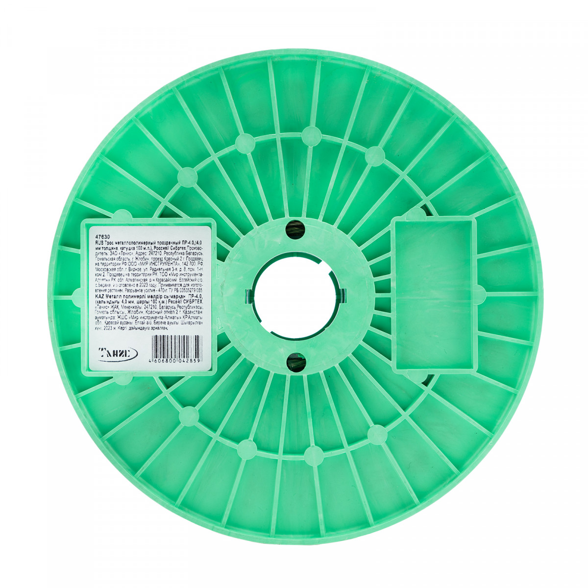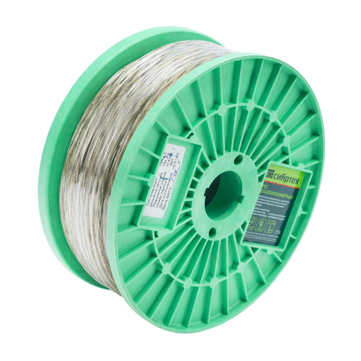 Трос металлополимерный прозрачный ПР-4.0, толщина 4.0 мм, катушка 100 метров Сибртех