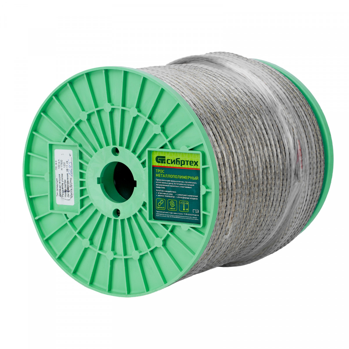 Трос металлополимерный прозрачный ПР-8.0, толщина 8.0 мм, катушка 100 метров Сибртех