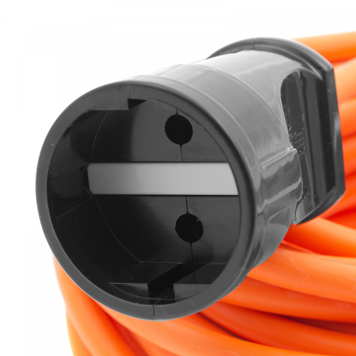 • Прочность и долговечность — корпус розетки и вилки выполнен из негорючего пластика.