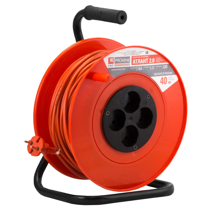 Силовой удлинитель на катушке Атлант применяется как в профессиональной сфере деятельности, так и в бытовых условиях. Устройство представляет собой пластиковую катушку с четырьмя розетками (с з/к) и с намотанным проводом типа КГ 3х2,5 ГОСТ длиной 20 метров, также на корпусе располагается устойчивая подставка и специальная рукоятка для удобства переноски удлинителя. Изделие подходит для использования в экстремальных условиях при температуре в диапазоне от +40 до -40 °С.