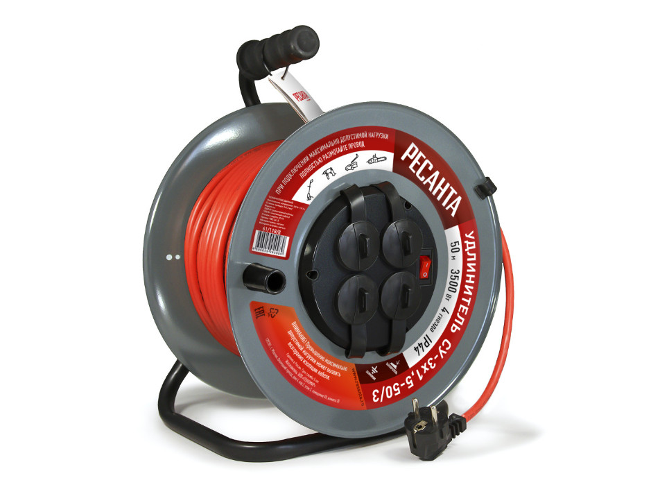 иловой удлинитель Ресанта СУ-3х1,5-50/3 обеспечит удаленное подключение электроинструмента и приборов на даче, рабочем объекте.