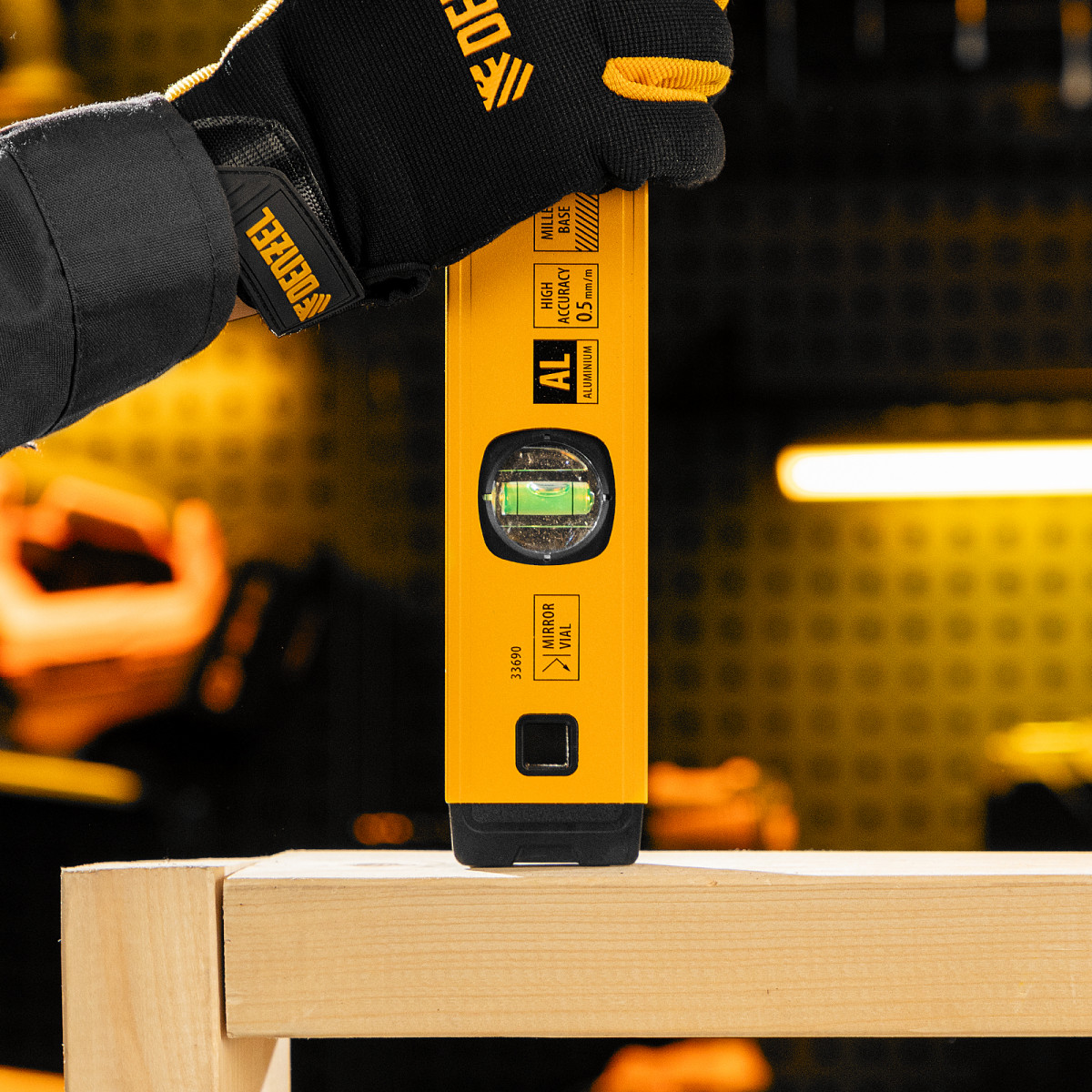 Алюминиевый фрезерованный уровень Denzel 33690 длиной 400 мм, с магнитом и 3 глазками, из которых 1 зеркальный, предназначен для контроля отклонений от горизонтальной, вертикальной и поверхности под углом 45° с точностью 0,5 мм/м. 3 пузырьковые камеры 90°, 180° и 45° позволяют быстро проверить правильность разметки. Инструмент незаменим при проведении строительных, ремонтных, сантехнических работ.