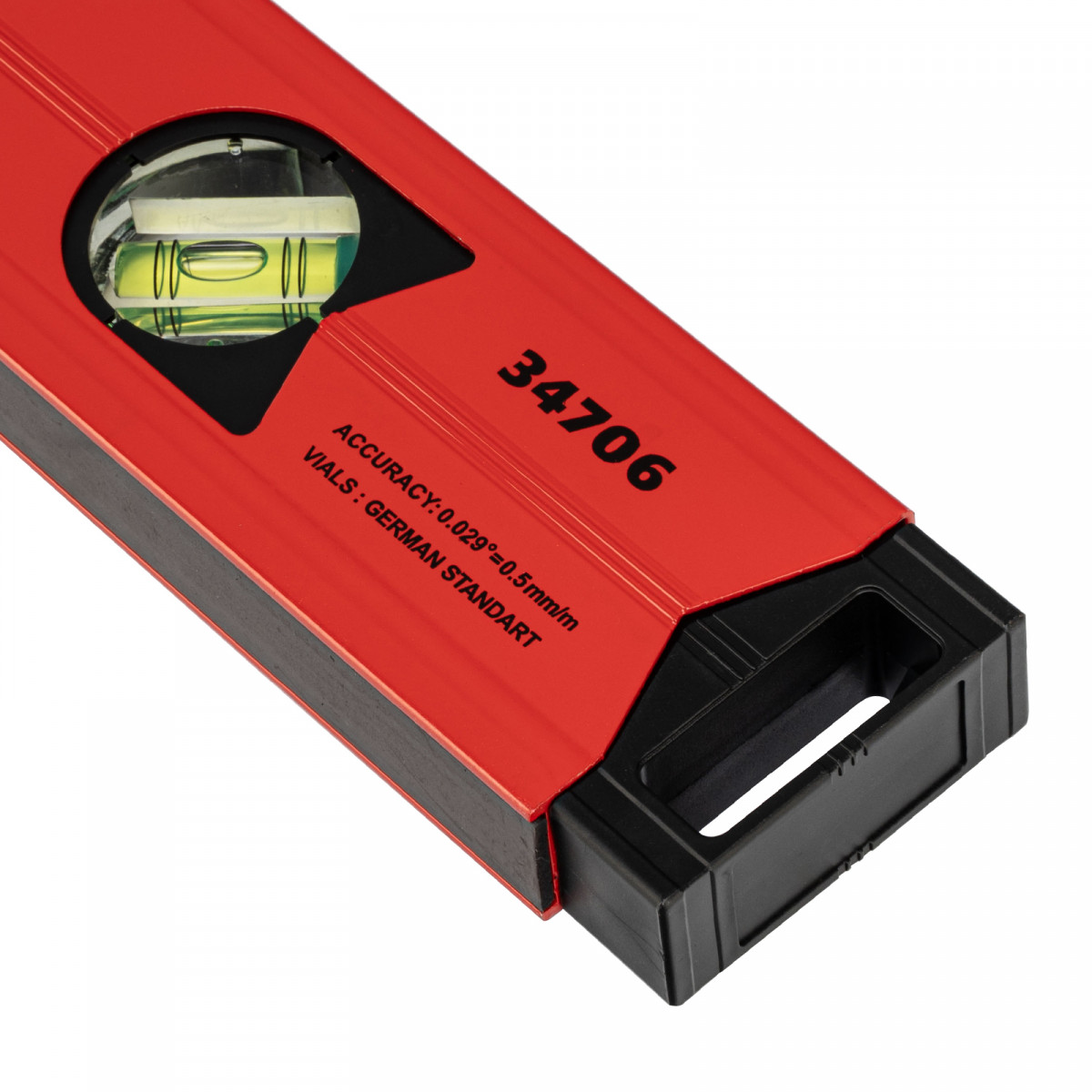 Алюминиевый магнитный уровень Matrix 34706 длиной 600 мм, усиленный, оснащен 3 глазками и одним зеркальным отражателем. С его помощью можно выявить отклонения от вертикали, горизонтали и угла 45 градусов. Встроенный зеркальный глазок повышает удобство работы, позволяя легко считывать показания.,Для определения отклонения вертикали 90 градусов необходимо использовать пузырьковую ампулу только в верхнем положении уровня. Только базовая поверхность является рабочей (противоположная ампуле 180 градусов).