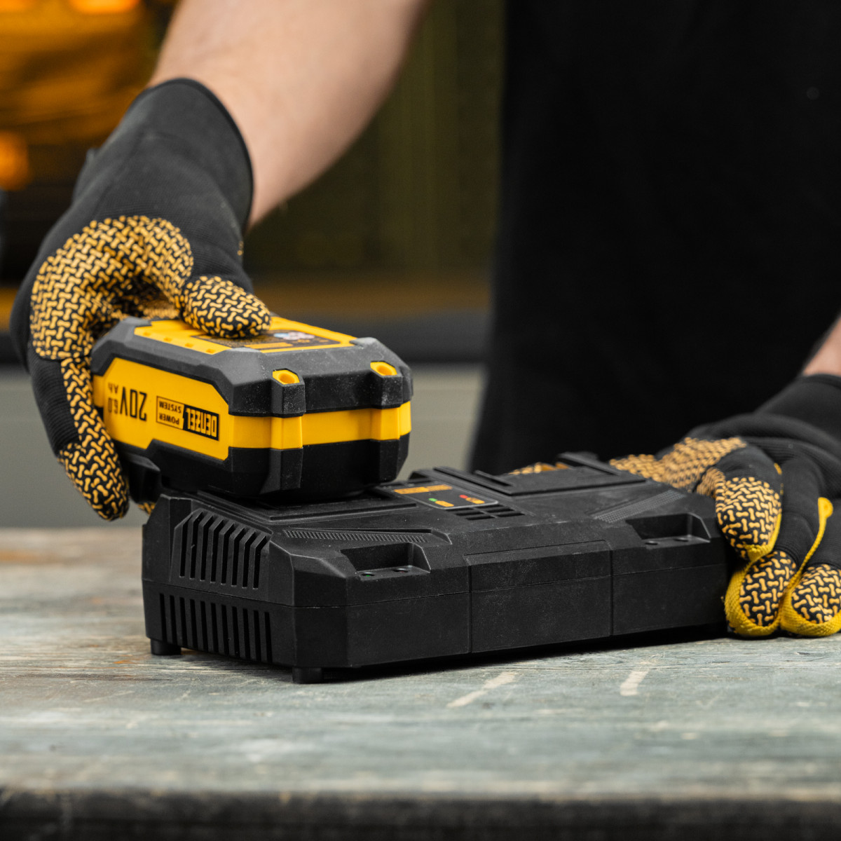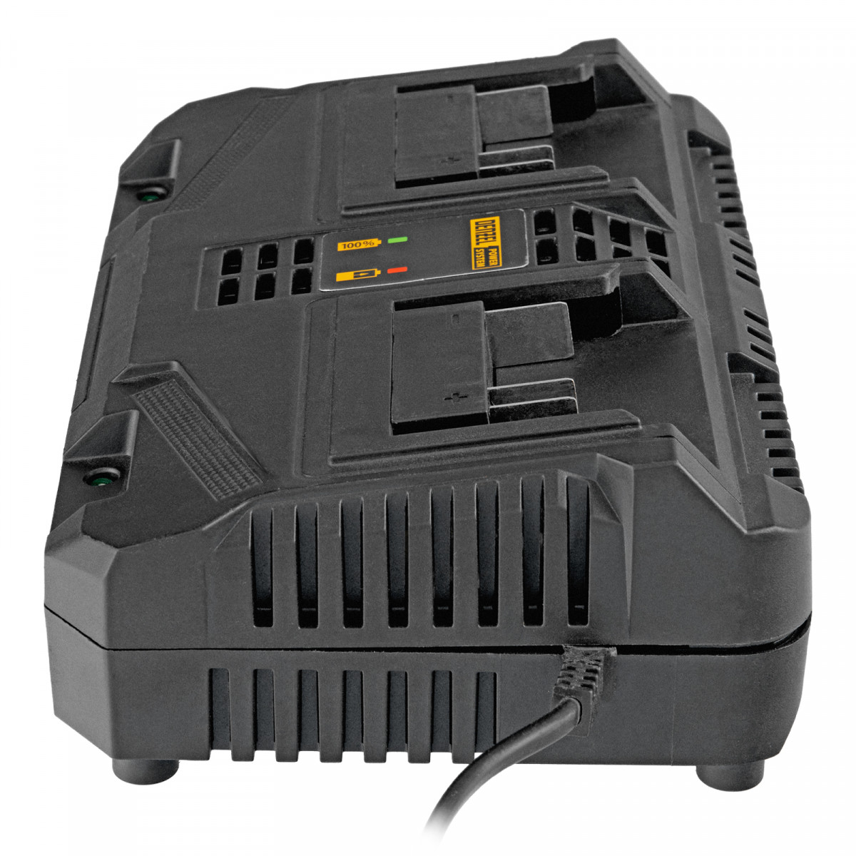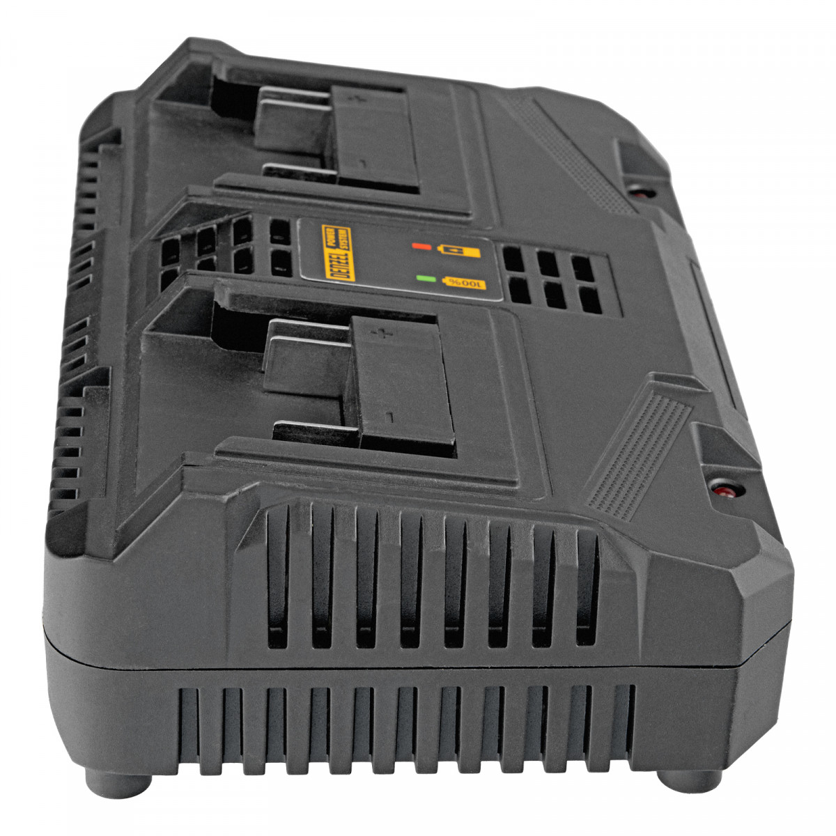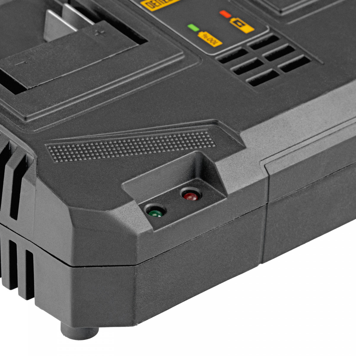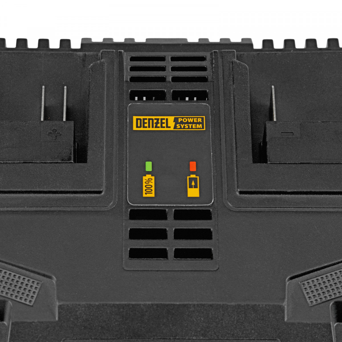 Двухпортовое зарядное устройство Denzel BCH-20-4.0x2 28458 предназначено для одновременной зарядки двух аккумуляторов единой платформы Denzel Power System 20 V. Обеспечивает ток заряда 4 A, совместимо с аккумуляторами Denzel 28442, 28444 и 28446.