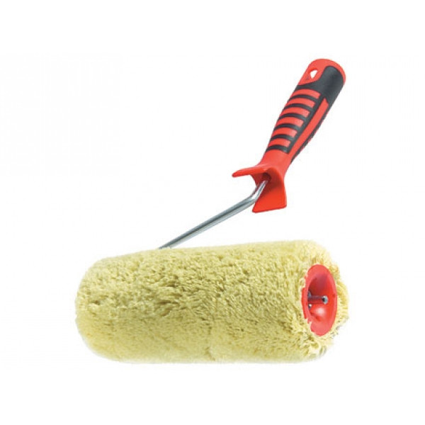 Произведен по технологии Termofusion. Термически приклеенная шубка валика износостойкая и бесшовная, создает идеально ровное покрытие. Улучшенная конструкция ролика обеспечивает легкое и свободное вращение. Материал шубки валика ― полиакрил. Применяется для работ с водно-дисперсионными красками и красками на основе химических растворителей. Предназначен для нанесения краски на неровные грубые поверхности. В комплекте двухкомпонентная ручка, бюгель оцинкован.