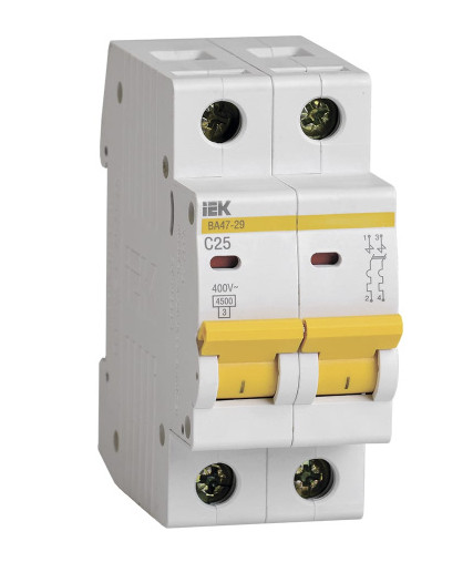 Выключатель автоматический 2Р 25А 4,5кА характеристика C ВА47-29 IEK