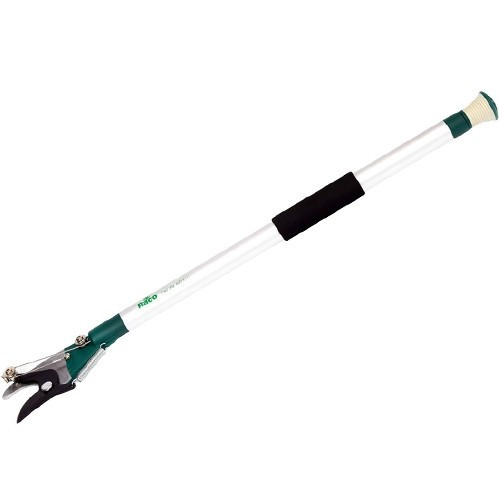 Высоторез Raco 4218-53/401C предназначен для подрезки сучьев на деревьях без использования лестницы. Данная модель позволяет обрезать ветки деревьев диаметром до 30 мм на высоте до 2.5 метров. Стержень состоит из алюминия. На рукоятках есть мягкие накладки для комфортного пользования. Режущее лезвие имеет высокий уровень заточки и закалки.