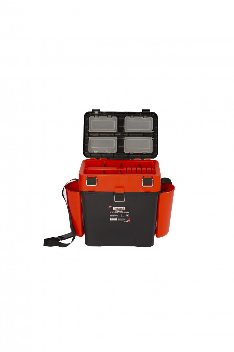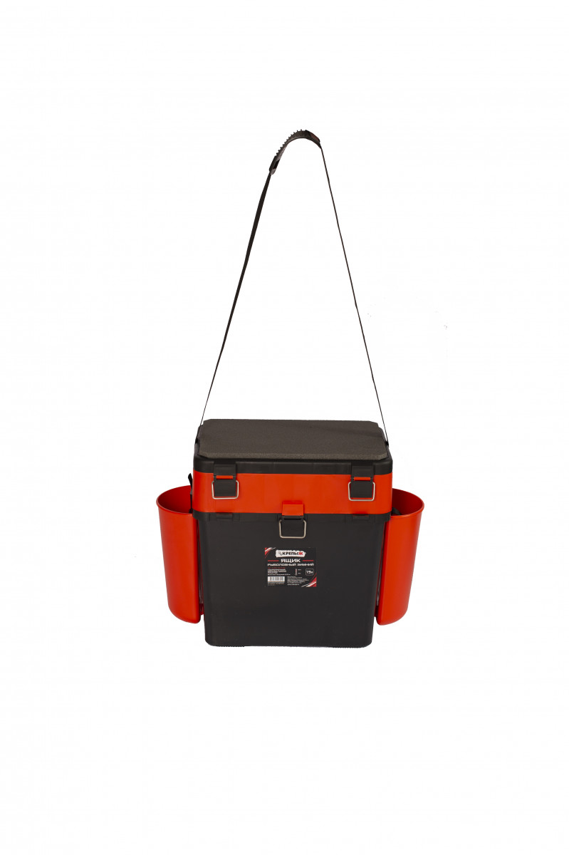 Ящик рыболовный зимний 19 л, черный/оранжевый с карманами КРЕПЫЖ