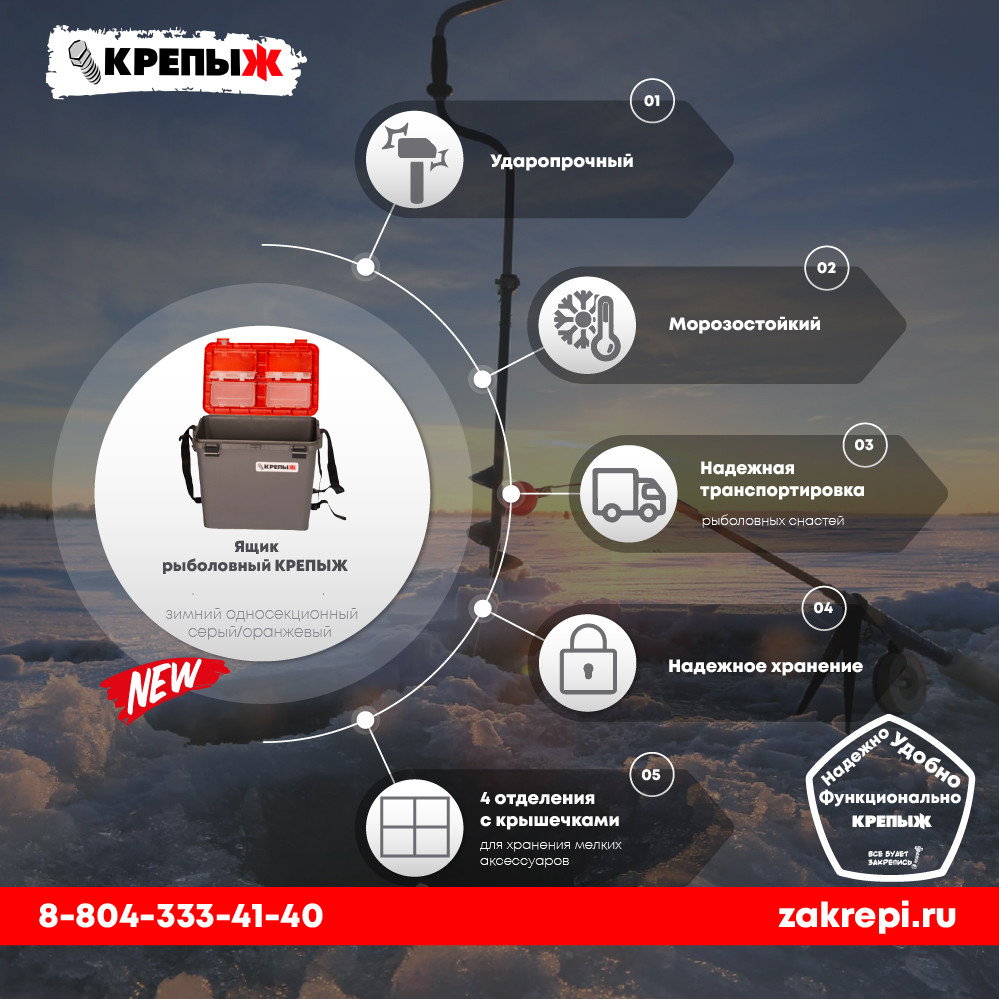 Ящик рыболовный зимний односекционный серый/оранжевый КРЕПЫЖ