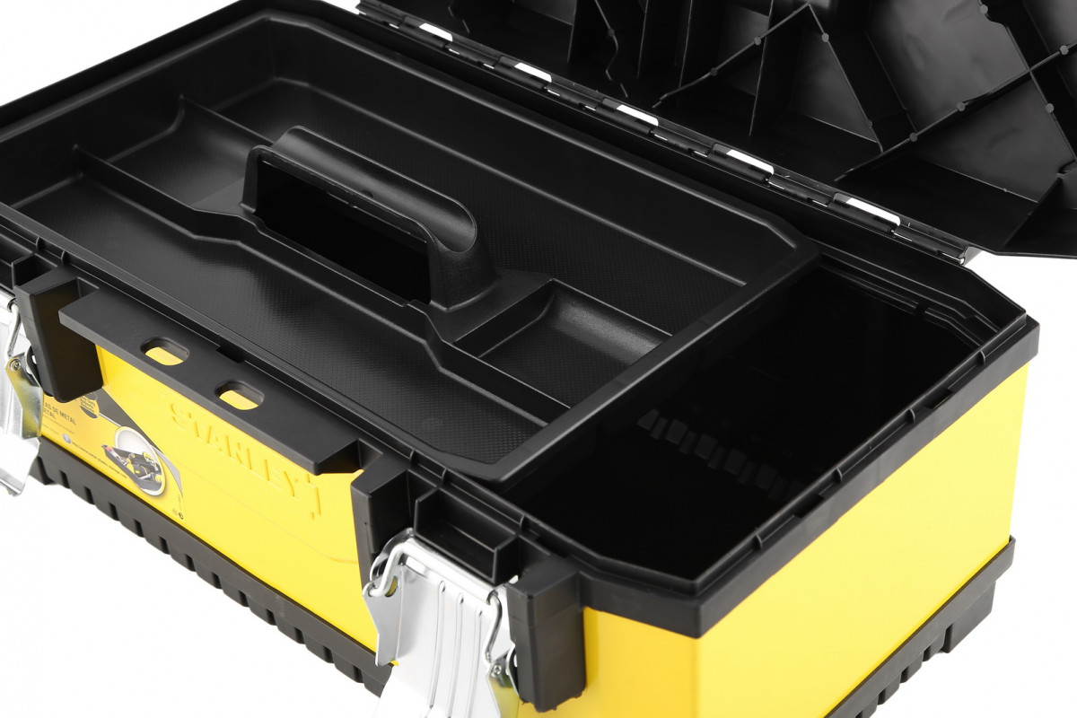 Ящик 20" Stanley 1-95-612 предназначен для хранения и транспортировки инструментов. Две металлические защелки надежно защищают от непреднамеренного открывания. Можно отдельно установить навесной замок. Такой ящик пригодится как профессионалу, так и домашнему мастеру: он позволяет держать инструменты и крепежные детали в одном месте и обеспечивает их сохранность. Сверху располагается переносной лоток для мелких деталей. Приспособление оснащено удобной ручкой. Выполнено из прочных материалов, способно выдержать большие нагрузки. Отлично подходит для работы с трубами и пиломатериалами. |