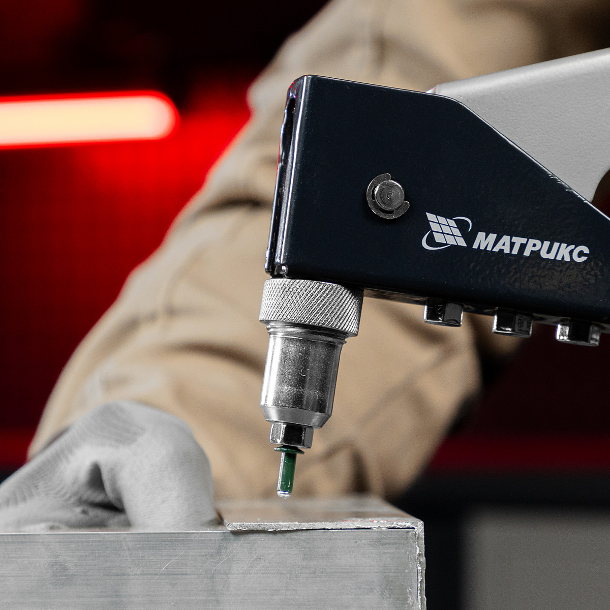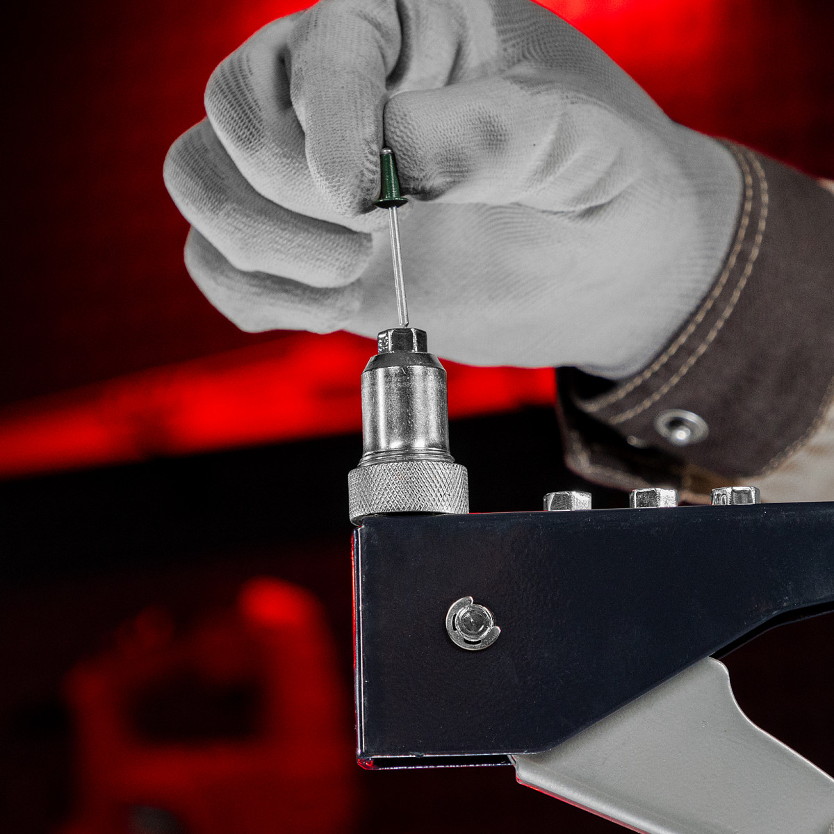 • Быстрая установка насадок — сменные головки для заклепок разных диаметров размещены на корпусе, монтажный ключ для их замены входит в комплект поставки.