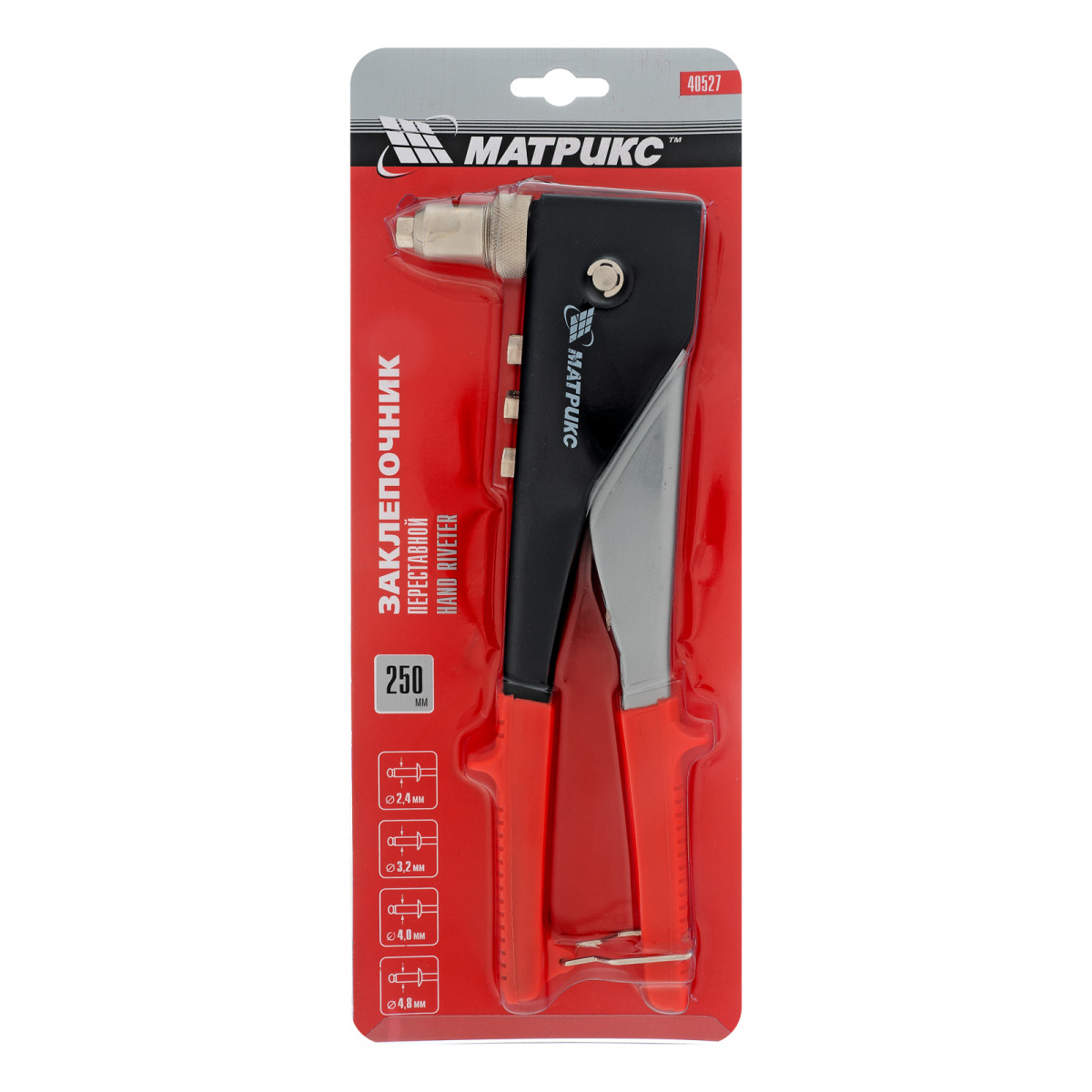 Заклепочник, 250 мм, переставной 0-90 градусов, заклепки 2.4-3.2-4.0-4.8 мм Матрикс