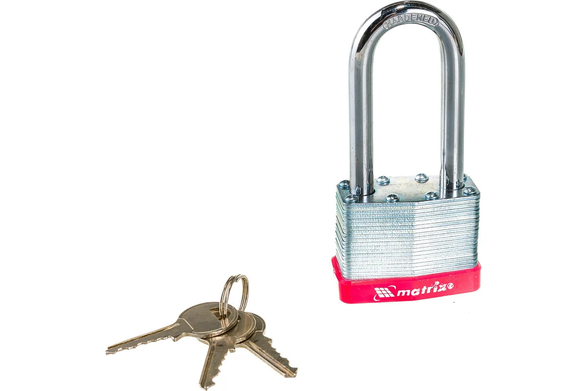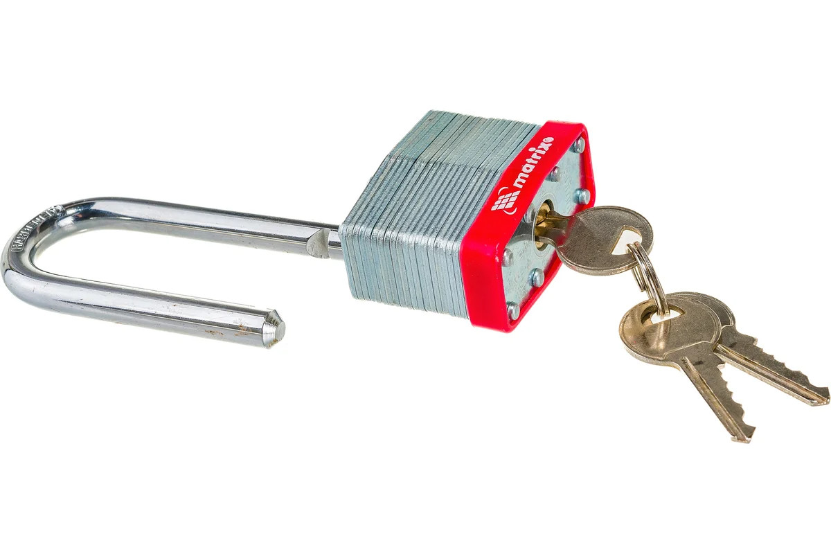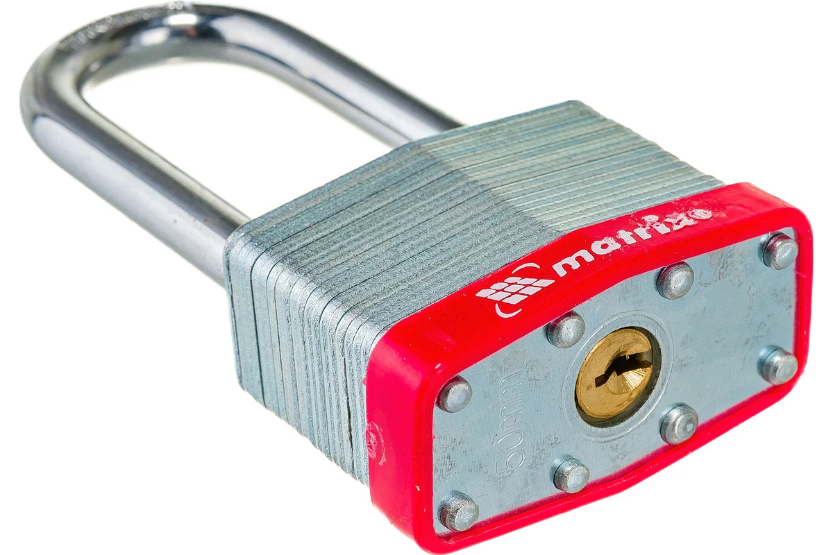 Навесной всепогодный замок MATRIX 50 мм удлиненная дужка 91826 обладает прочным обрезиненным корпусом. Изделие имеет стальные дужку и засов. Герметизация корпуса и дужки замка, минимальный размер зазоров между деталями, специальная крышка на ключевой блок делают конструкцию стойкой к воздействию атмосферных осадков. В комплекте три ключа