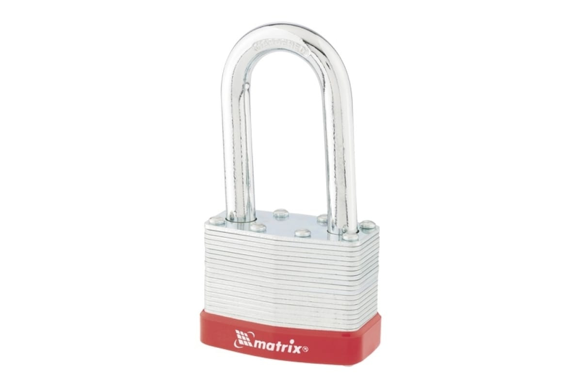 Навесной замок MATRIX 65 мм удлиненная дужка 91811 обладает автоматическим запиранием дужки. Изделие используется для хранения ценных вещей, запирания помещений различного назначения. Конструкция с удлиненной стальной дужкой изготовлена из стальных пластин. Хромированное покрытие обеспечивает защиту замка от коррозии. Размер - 65 мм