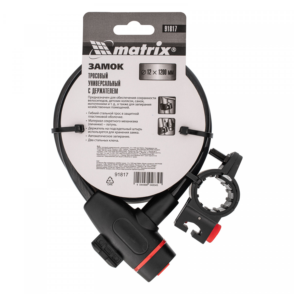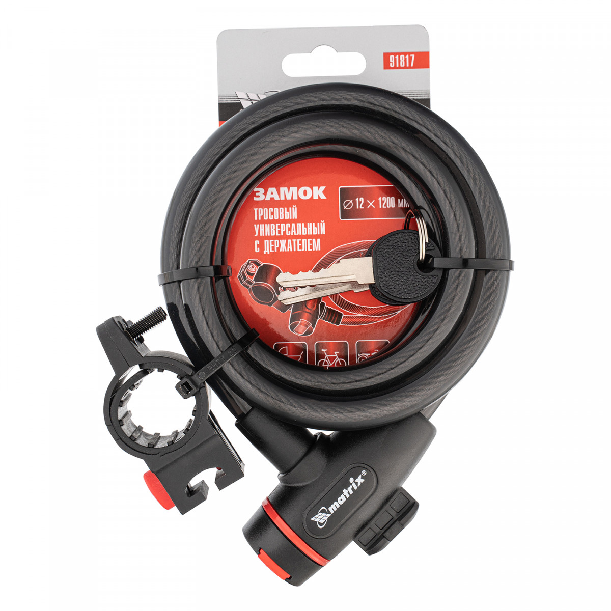 Замок тросовый универсальный с держателем, 12 х 1200 мм Matrix