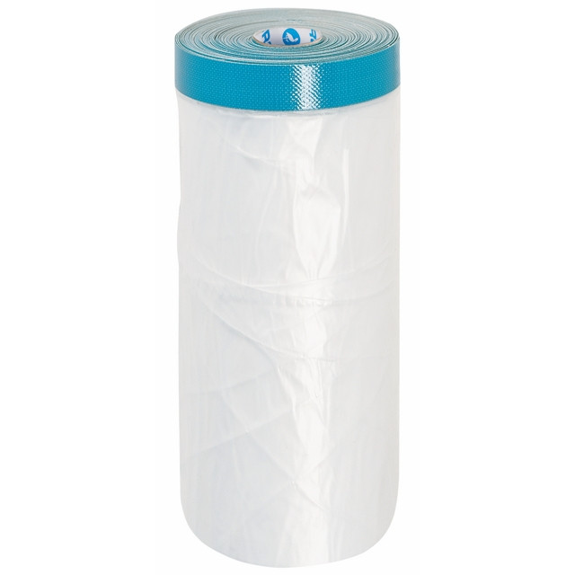 Защитная пленка ''Color Expert CoverQuick'' с армированной малярной лентой, для внутренних и наружных работ на шероховатых поверхностях, плотное прилегание пленки к поверхности за счет электростатического заряда, остаётся на поверхности до 21 дней. Размер: 2,7х14 м.