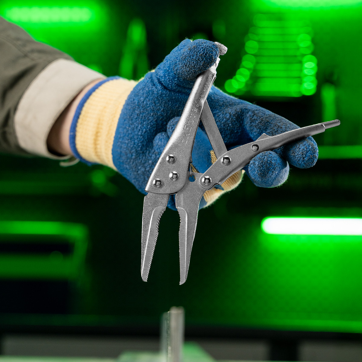Зажим ручной Сибртех 18423 с удлиненным захватом, 170 мм, используется для проведения слесарных, столярных, монтажных, сварочных работ. Он удерживает разные по форме заготовки и детали, при этом руки мастера остаются свободными для дальнейших действий. Удлиненный захват обеспечивает надежную фиксацию. Инструмент пригодится на строительной площадке, во время ремонта, а также дома, в мастерской или гараже.