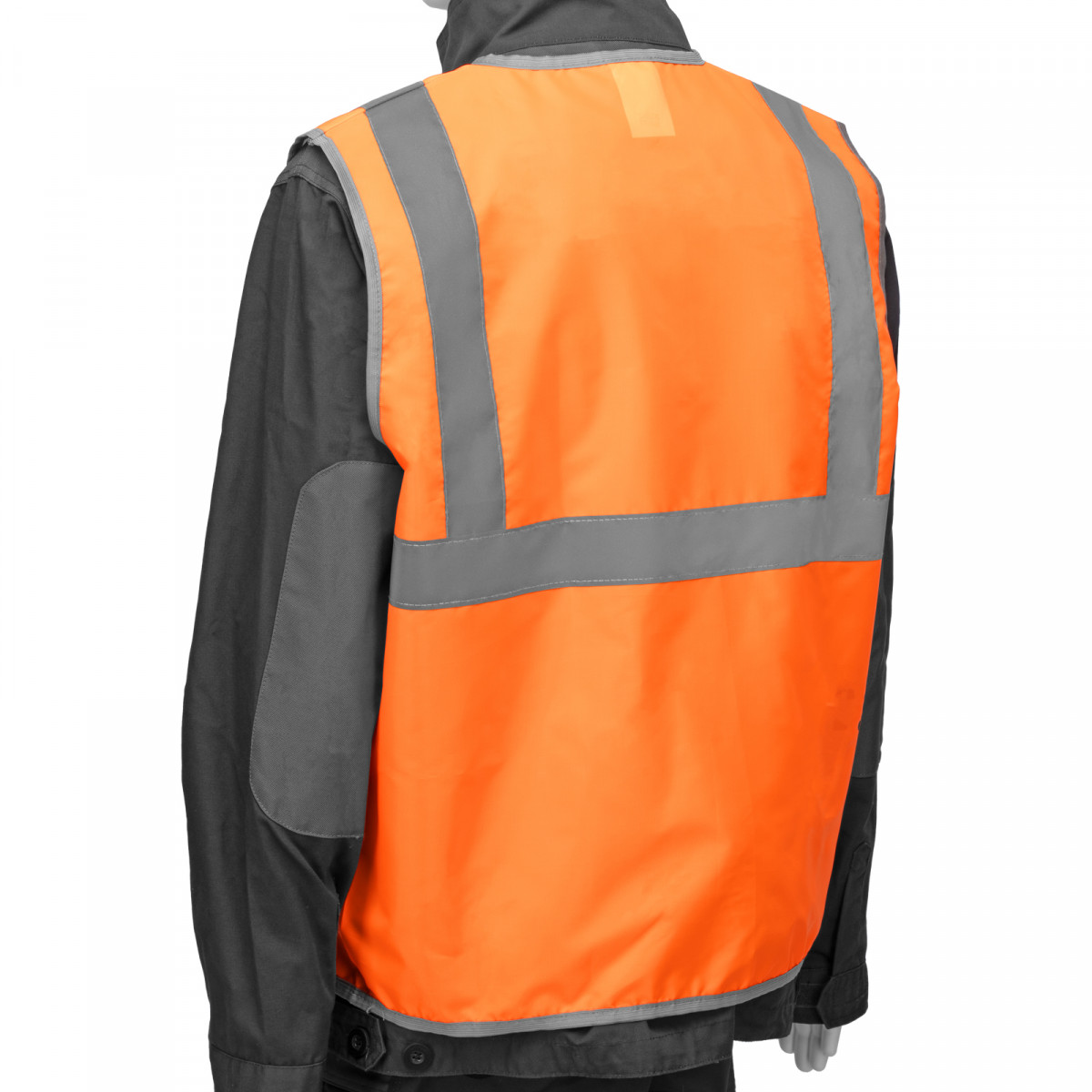 Оранжевый сигнальный жилет Сибртех 89513 размера XL (52-54) обеспечивает безопасность пользователя, а также защищает одежду от грязи. Его можно носить в любое время суток, т.к. яркий оранжевый цвет хорошо видно днем, а светоотражающие полосы — ночью и в условиях плохой видимости. Жилет подходит для эксплуатации в любую погоду и будет полезен строителю, охраннику, работнику коммунальных или дорожных служб.